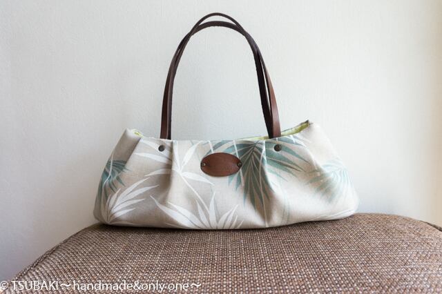持ち手には本革を使用し・カシメ留め・開口部にはマグネットホックをお付けしています。